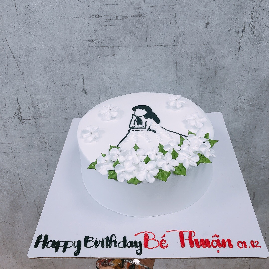 Bánh kem cô gái hoa váy trắng
