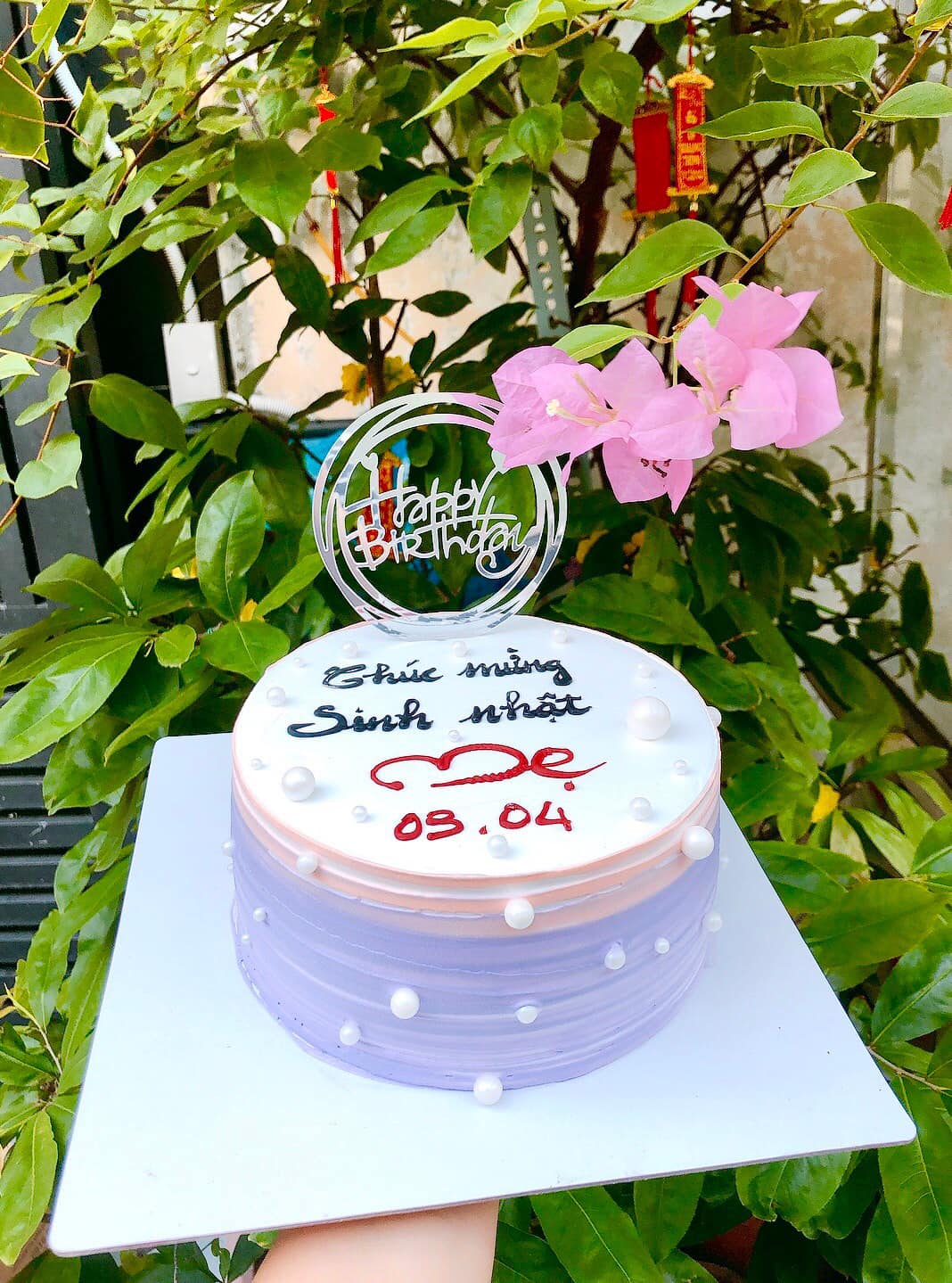 Bánh kem trang trí tone tím