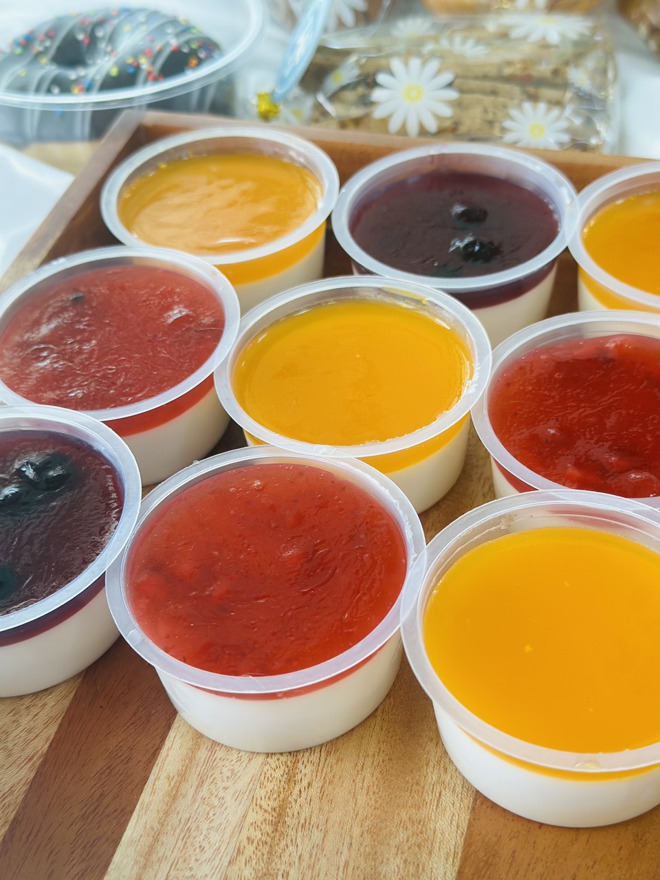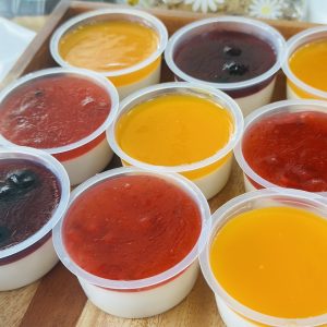 panna cotta dâu, chanh dây, việt quất